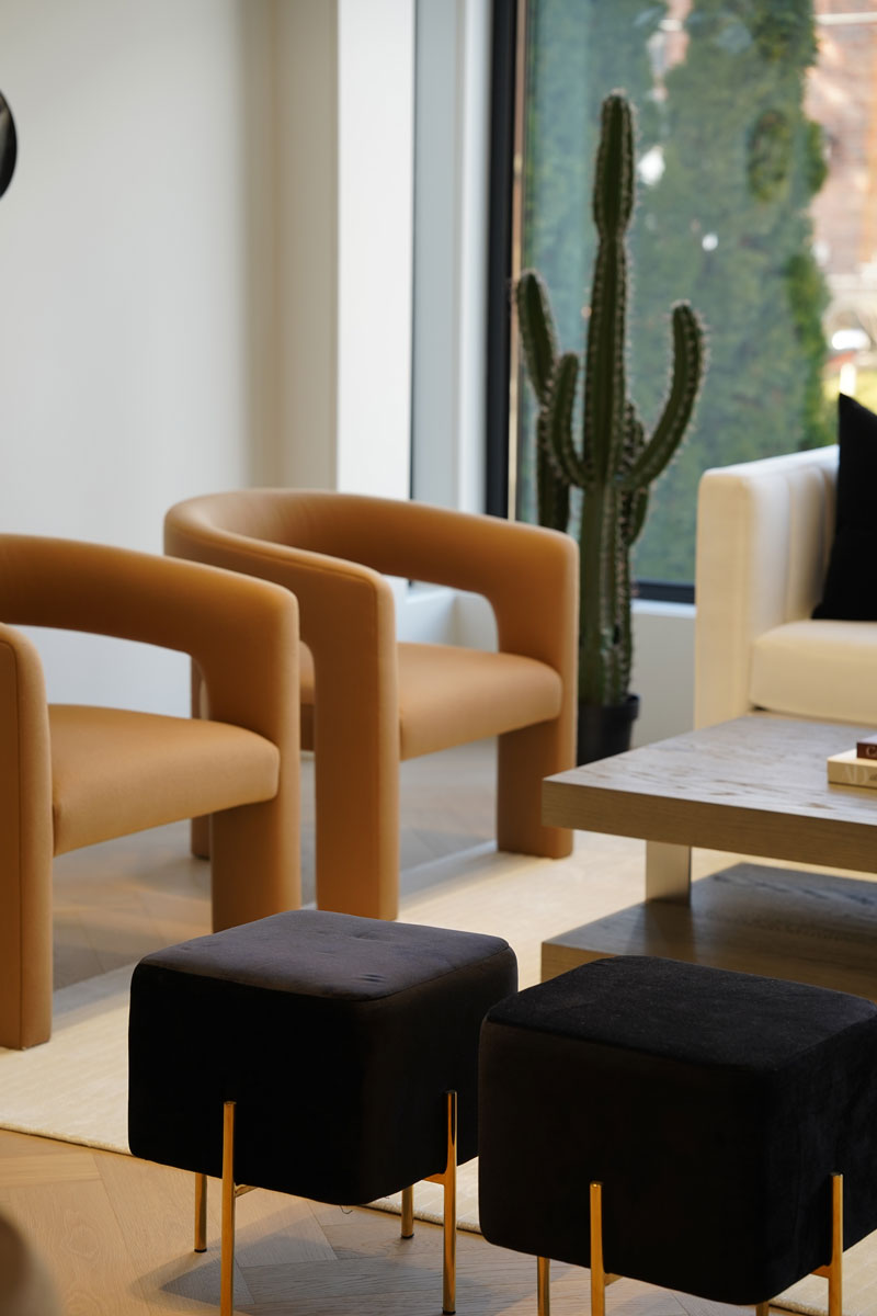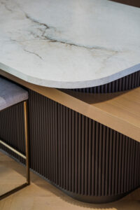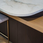 Materials such as natural wood veneers, stone surfaces, and brushed metal fixtures were selected not only for visual impact but also for durability and long-term performance. The construction team worked closely with fabricators to ensure consistency between shop drawings and on-site installation, particularly where curved edges, recessed plinths, and custom hardware were involved.