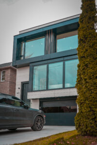 Special attention was given to the building envelope: insulation continuity, air barriers, and moisture control were integrated seamlessly to meet modern performance standards while maintaining a minimal aesthetic. Exterior cladding transitions—between dark metal panels and light finishes—were executed with crisp detailing to reinforce the home’s contemporary presence within the neighborhood context.